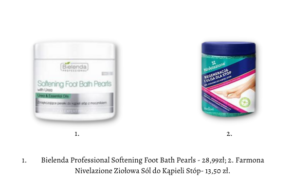 Bardzo ciekawą propozycją jest również sól do kąpieli stóp marki Farmona. Została wzbogacona o ekstrakt z mięty oraz szałwii, które świetnie odświeżają oraz działają dezodorująco. Dodatkowo świetnie wygładza, zmiękcza oraz łagodzi. Regularnie stosowana niweluje szorstkość oraz chroni przed powstaniem zrogowaceń.
