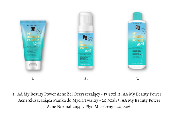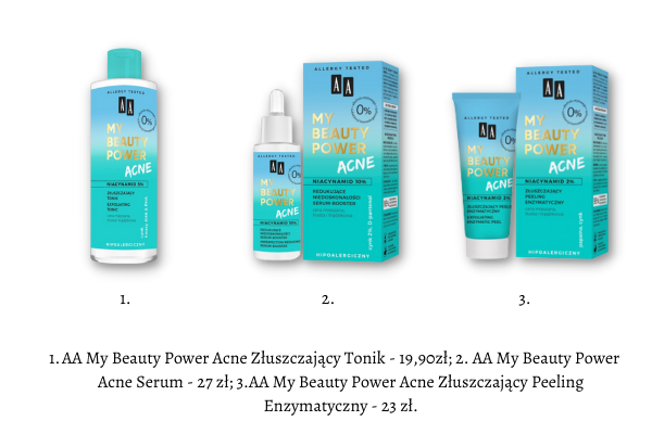Po przeanalizowaniu kosmetyków marki AA z serii my power acne możemy wywnioskować jedno. Będzie to świetna, budżetowa pielęgnacja dla cer problematycznych. Dopasowanie składników aktywnych działa kompleksowo, nie tylko reguluje pracę gruczołów łojowych, ogranicza powstawanie niedoskonałości, jak również niweluje skutki zmian zapalnych, takich jak przebarwienia. Zdecydowanie jest to grupa kosmetyków warta wypróbowania!