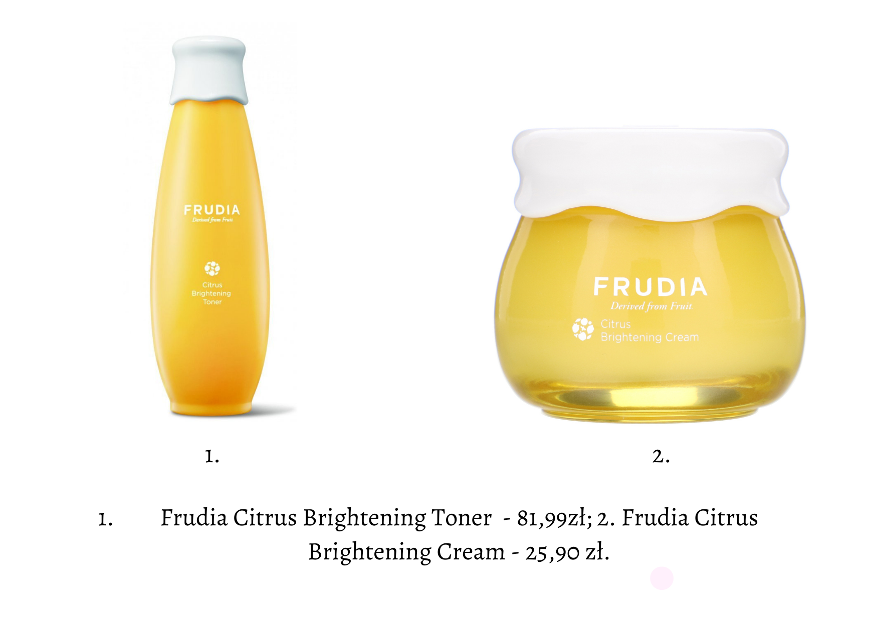 Frudia to kolejna marka kosmetyczna na naszej liście, która znacząco kojarzy się z owocami. Już same oryginalne opakowania przywodzą na myśl soczyste owoce, jednocześnie są bardzo sugestywne, co do składnika aktywnego, obecnego w danej serii. Frudia to koreańska marka, tworząca produkty zarówno do pielęgnacji twarzy jak i ciała. Sama nazwa pochodzi z połączenia angielskiego słowa fruit oraz greckiego dia, co w tłumaczeniu oznacza: pochodzenie z owoców. Kolejną, bardzo ciekawą rzeczą związaną z marką jest ich sposób na pozyskiwanie substancji aktywnych. Stosuje metodę kompresowania owoców na zimno, która sprawia, że związki chemiczne zachowują swoje działanie i właściwości. Wszystkie produkty napakowane są antyoksydantami, które niwelują niekorzystne objawy stresu oksydacyjnego. Skupmy się na czterech seriach, dedykowanych konkretnym typom skóry: