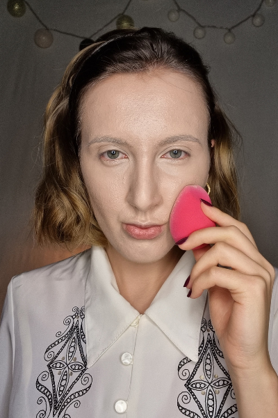 Dokładnie pokrywamy całą twarz, przeciągając produkt na szyję, aby uniknąć efektu nieestetycznego “odcięcia”. Aplikujemy korektor pod oczy i na ewentualnie prześwitujące niedoskonałości. Tak przygotowaną podstawę makijażu dokładnie, aczkolwiek delikatnie pudrujemy, najlepiej pudrem transparentnym, aby nie zmienić koloru podkładu. W tym wypadku polecamy puder marki Delia Stay Matt Skin Defined Pressed Powder (Delia puder transparentny), który utrwali i delikatnie zmatuje twarz.