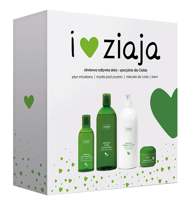 Kultowy zestaw oliwkowy składa się z żelu pod prysznic, mleczka do ciała, płynu micelarnego i kremu oliwkowego o niezapomnianym, przyjemnym zapachu. W składach produktów najdziemy między innymi: