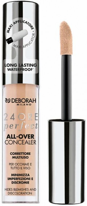 24Ore Perfect All-Over Concealer zapewnia długotrwałe naturalne krycie i wodoodporną formułę. Lekki korektor w płynie minimalizuje niedoskonałości oraz usuwa cienie i przebarwienia. Dzięki bardzo dużemu aplikatorowi łatwo uzyskać pokrycie od punktowego do pełnego na każdej części twarzy. Kluczowe składniki i zalety: Zawiera funkcjonalne składniki aktywne, takie jak: kwas hialuronowy, probiotyki i zielona herbata, produkt nawilża i rewitalizuje skórę oraz zwalcza szkodliwe wolne rodniki.