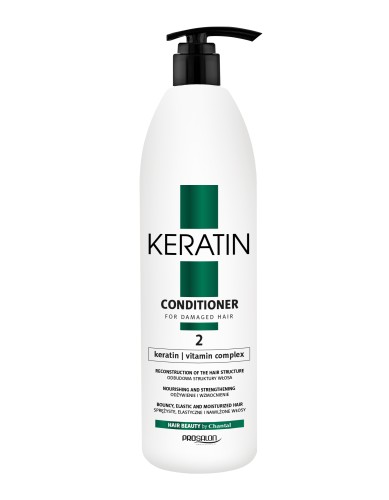 Prosalon Keratin Conditioner to odżywka do włosów od marki Chantal. Polecana do pielęgnacji włosów zniszczonych, suchych i matowych. Lekka formuła wzbogacona keratyną i kompleksem witaminowym. Intensywnie regeneruje i kondycjonuje włosy. Sprawia, że stają się błyszczące i miękkie w dotyku.