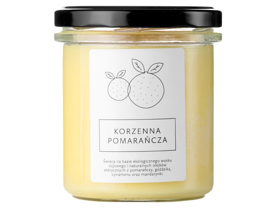 Chcesz poczuć nastrój świątecznych i radosnych dni oraz smak pierniczków i korzennych mikstur do picia? Uwolnij magiczny zapach, a pomoże Ci w tym świeca na bazie ekologicznego wosku sojowego i naturalnych olejków eterycznych z pomarańczy, goździka, cynamonu i mandarynki. Starannie dobrane olejki eteryczne niwelują złe samopoczucie, przywracają spokój przed zaśnięciem. Wosk sojowy pali się w niższej temperaturze niż parafina. Nie emituje toksyn. Każdorazowo należy roztopić całą powierzchnię świecy w celu uniknięcia efektu “tunelu”. Przed kolejnym zapaleniem proszę przyciąć zwęgloną część knota, by uniknąć okopcenia.