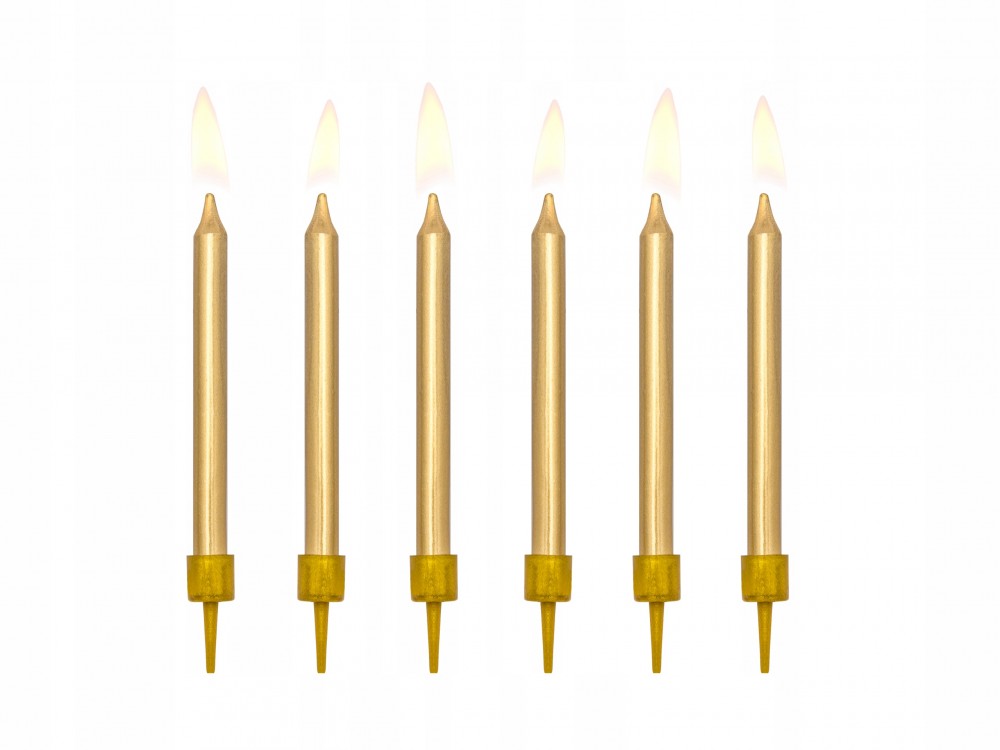 Świeczki urodzinowe gładkie Partydeco 6 cm 6 szt. złote