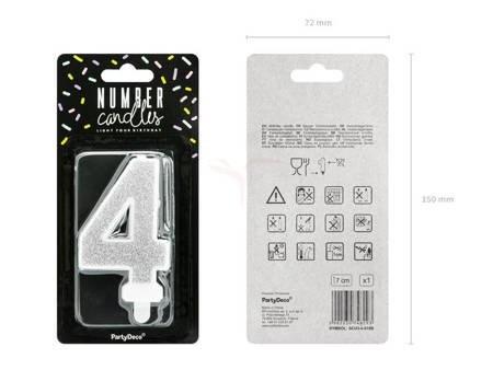 Świeczka urodzinowa - Cyferka 4 - Srebrna - 7 cm