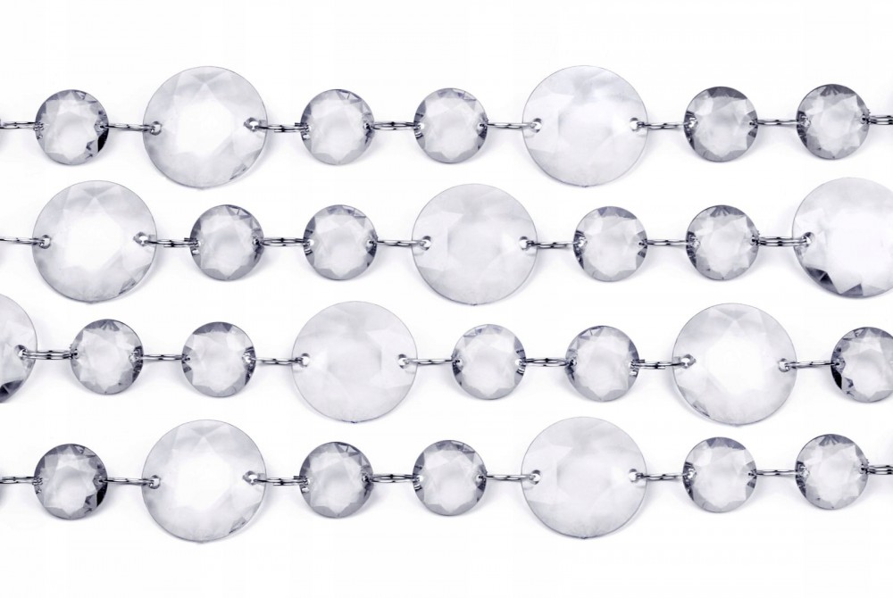 Oferowana girlanda kryształki została wykonana z wysokiej jakości bezbarwnego akrylu. Ma 1 metr długości i można ją łączyć w dłuższe łańcuchy.