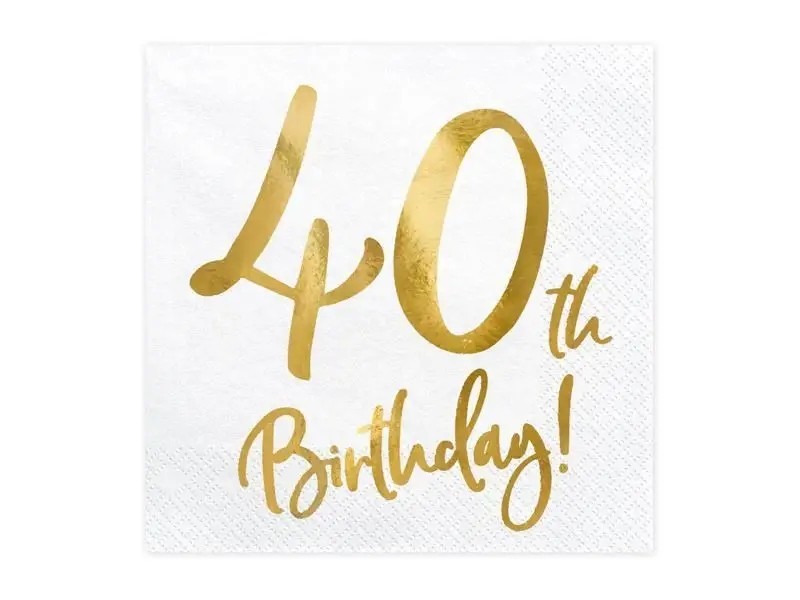 Serwetki papierowe - 40th Birthday- Białe - 33x33cm - 20 sztuk
