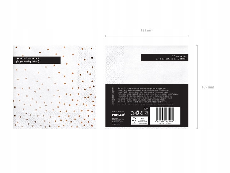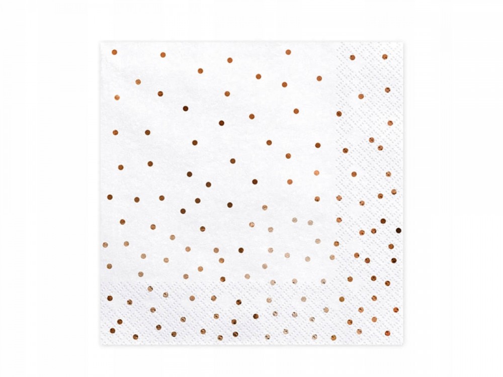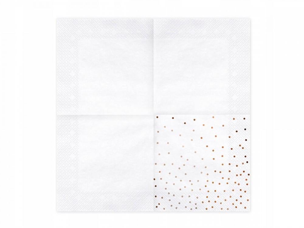 Serwetki białe w różowo złote kropki - 20 sztuk
