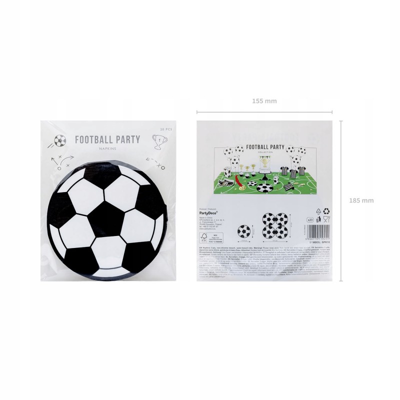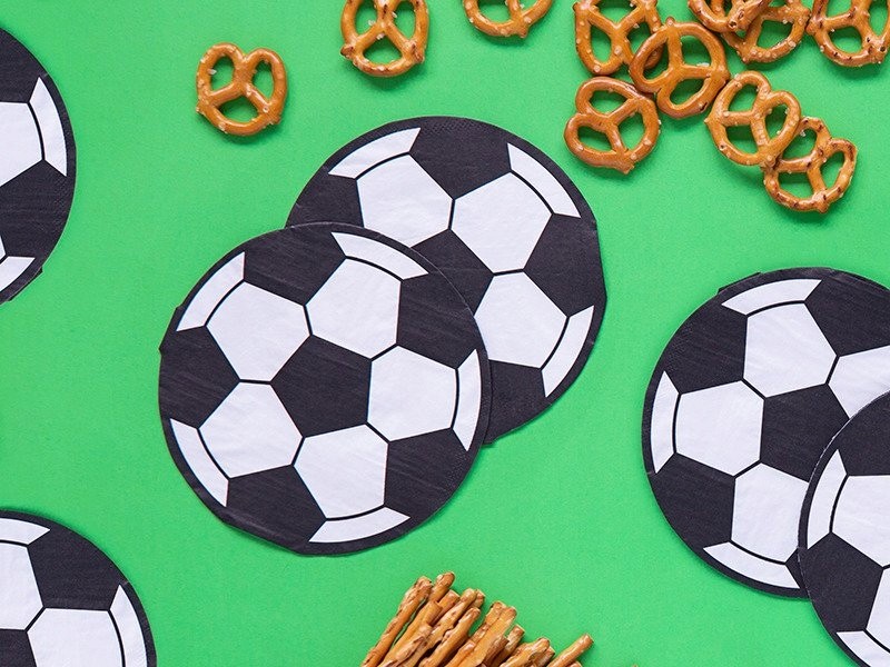 Footballowe serwetki to ładne i niedrogie akcesoria imprezowe, z których chętnie skorzystają wszyscy goście bawiący się na przyjęciu organizowanym z okazji urodzin Twojego dziecka. Sportowa, footballowa kolorystyka serwetek w szczególności sprawdzi się w czasie urodzin chłopca - małego miłośnika piłki nożnej.
