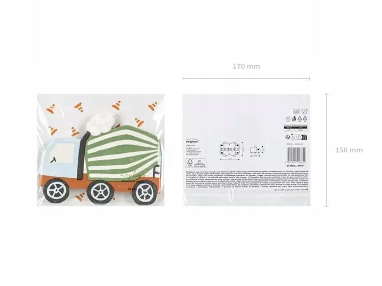Serwetki w kształcie betoniarki to idealny pomysł na przyjęcie urodzinowe dla małego fana pojazdów budowlanych. Takie serwetki doskonale się sprawdzą również na imprezach tematycznych. Będą się doskonale prezentować na stole, ale również zabezpieczą stół przed napojami i jedzeniem. Szczegóły zawarte na serwetkach sprawią, że wszystkim na imprezie pojawi się uśmiech od ucha do ucha. Takie serwetki na pewno zaskoczą nie jedną osobę.