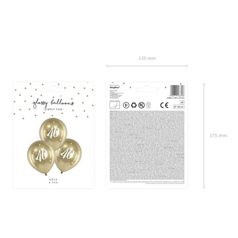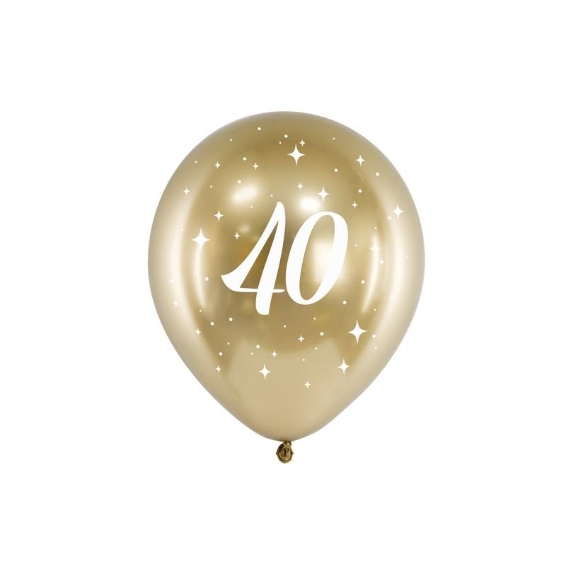 Balony chromowane w kolorze złotym na 40 urodziny 6 szt
