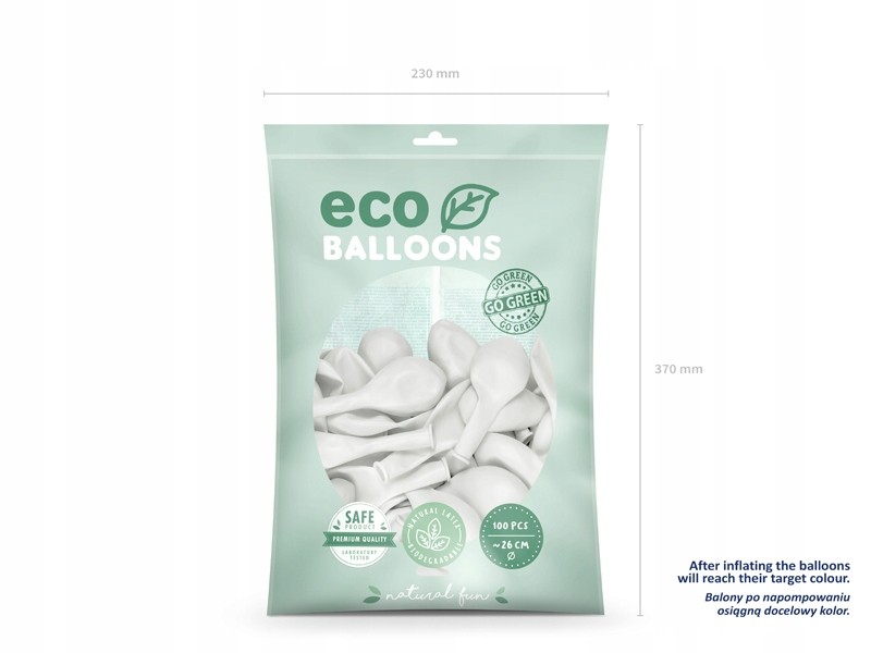 Balony Eco pastelowe 26 cm, biały, 100 szt.