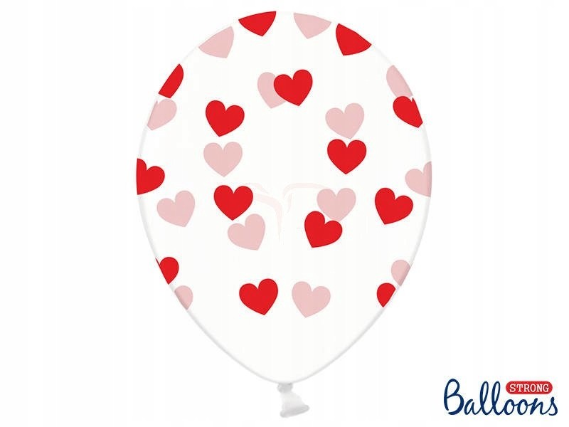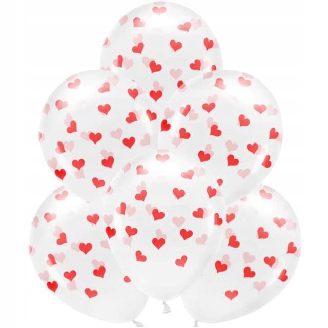 Balony Eco 33 cm, Serca czerwone, Crystal Clear, 6 szt.