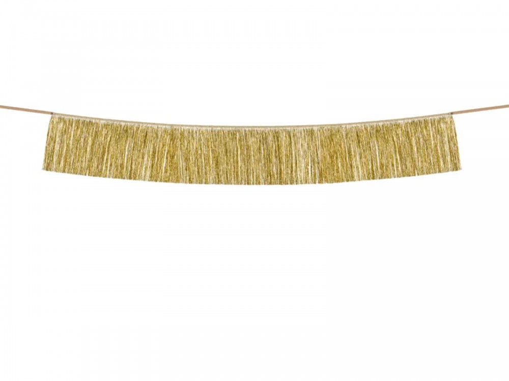 Girlanda ze złotymi, foliowymi frędzlami, idealna na sylwestra lub urodziny.