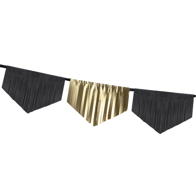 Girlanda GOLD PARTY została wykonana z bibuły i folii, dzięki czemu jest niesamowicie lekka i łatwa w montażu.